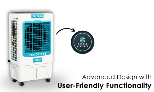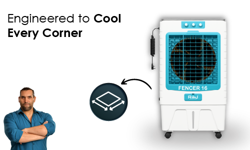 The FENCER 16070 is a high-performance air cooler designed to deliver exceptional cooling for rooms up to 700 sq. ft. Its powerful 205-watt motor and 40-feet air throw ensure even large spaces are cooled quickly and effectively. Whether it’s for your living room, office, or commercial space, this cooler guarantees optimal performance.