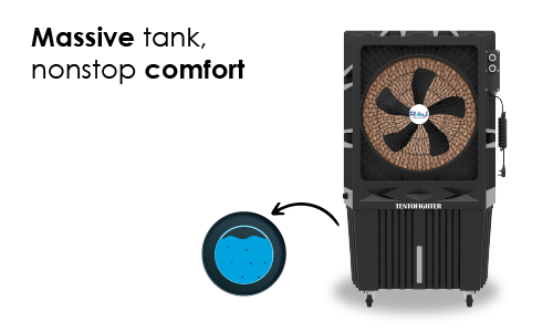Introducing the TENTO FIGHTER 20 air cooler, designed for the tent industry. With a 3-speed motor, 125-liter capacity, and efficient 180W power consumption, it provides powerful, low-noise cooling at 1300 RPM. Perfect for outdoor settings, it ensures comfort in any tent environment.