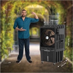 Enjoy powerful cooling with the 18″ fan blade and bullet air throw, delivering maximum airflow to every corner. The unbreakable 5D grill ensures durability for long-lasting performance.