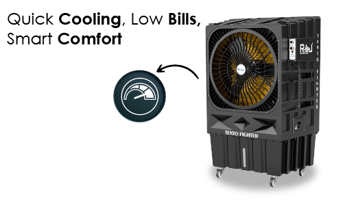 Designed with a powerful axial fan (24.5″) and 7357 CFM airflow, ensuring long-range air delivery. Perfect for large spaces like banquet halls, party plots, and hotels, providing uniform cooling even in crowded areas.
