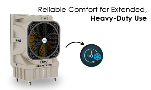 The MILITARY COOL 30150 is engineered for massive, demanding spaces that need powerful and consistent cooling. With a giant 60 ft. air throw and coverage up to 3000 sq. ft., this cooler is the ultimate choice for large halls, factories, outdoor functions, or military camps. Its robust 550-watt motor delivers unstoppable airflow, providing an instant shield against extreme heat.
