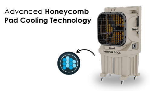 The RAJ MILITARY COOL 30300 AS is built for large-scale cooling needs, delivering quick and powerful airflow to cover massive spaces of up to 3000 sq. ft. Its heavy-duty fan ensures that hot and humid environments are cooled down efficiently, making it perfect for large gatherings, halls, workshops, and industrial spaces.