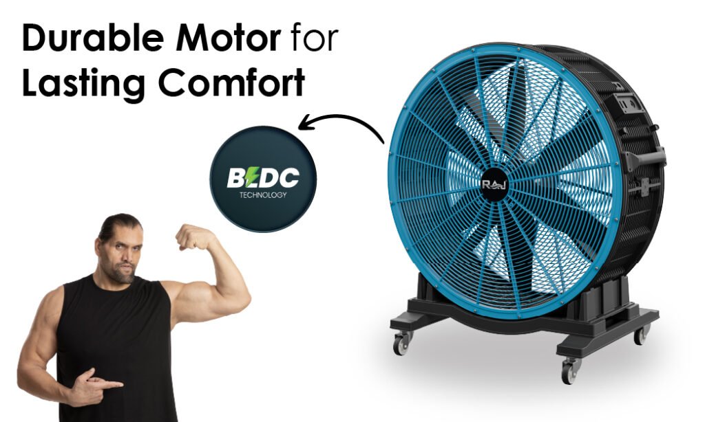 The BOXER FAN 1100-A is crafted for optimal energy efficiency and cooling performance, thanks to its advanced BLDC motor technology. With a modest power consumption of 140 watts and a 0.19 horsepower capacity, this fan delivers substantial airflow without burdening your electricity bill, making it ideal for both industrial and large commercial spaces.