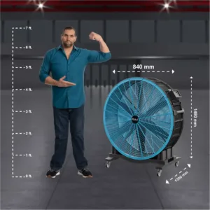 Weighing 38 KG, the BOXER FAN 1300 is designed for maximum stability and minimal vibration during operation. Its rugged construction ensures long-term use, while the integrated wheels allow easy relocation within spaces. Whether for factories, warehouses, or event spaces, this fan provides a reliable and mobile cooling solution.