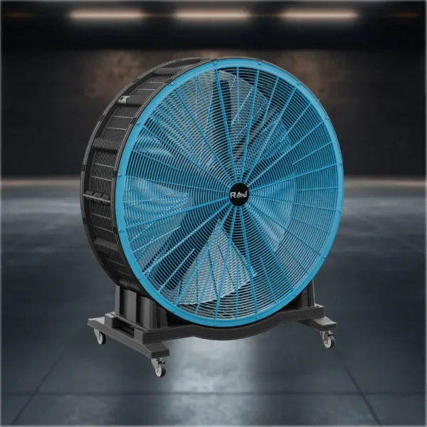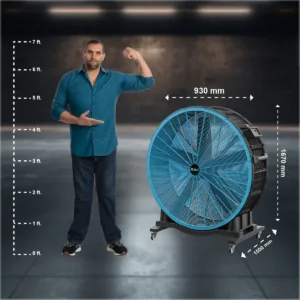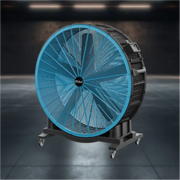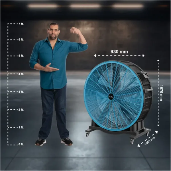 Weighing 56 KG, this fan is built for stability and vibration-free operation, ensuring safety and durability even during prolonged use. Despite its hefty build, the integrated wheels allow for smooth mobility, enabling users to reposition the fan effortlessly wherever cooling is needed most.
