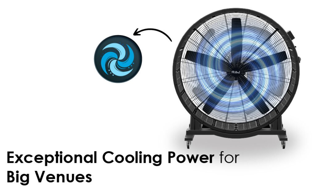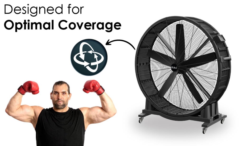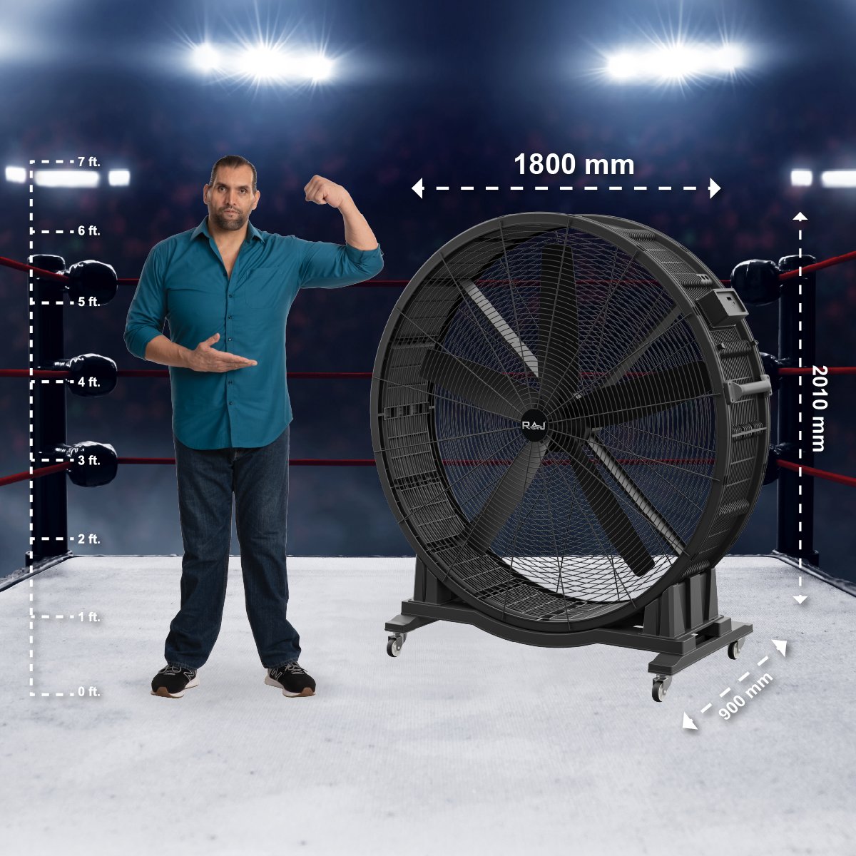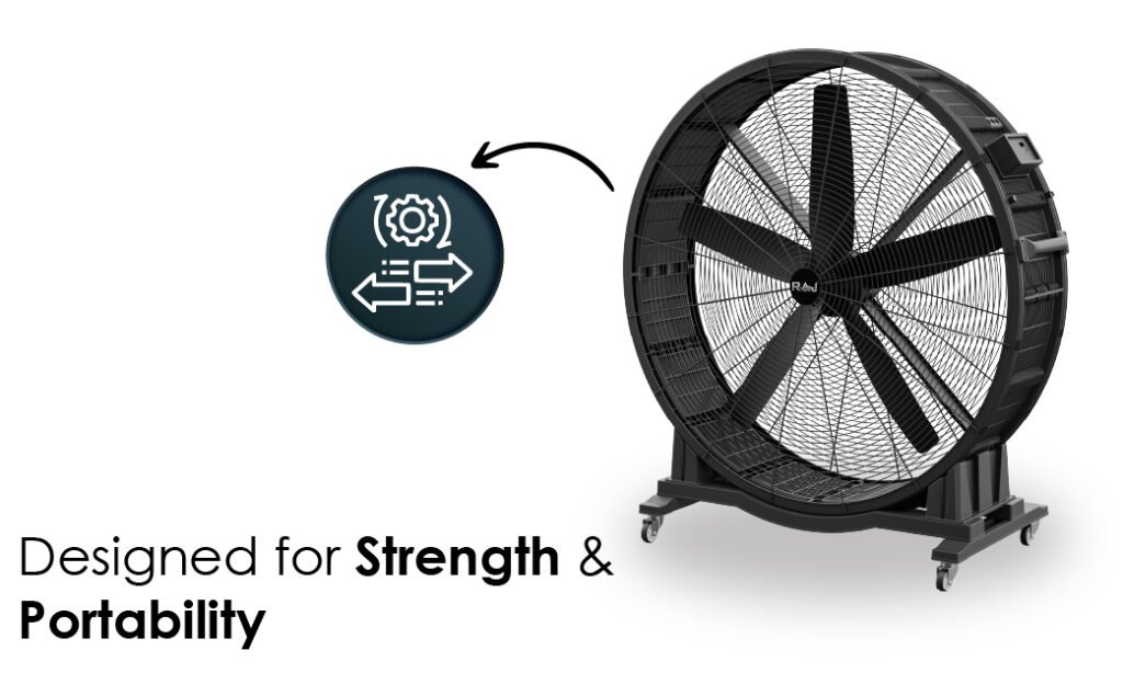 Weighing 75 KG, this fan is both sturdy and stable, capable of handling continuous high-speed operation without excessive vibration. Despite its hefty build, the integrated mobility wheels make it easy to reposition as needed. Whether for permanent setups or temporary arrangements, the BOXER FAN 1800 delivers reliable cooling with the convenience of portability.