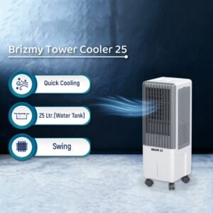 Boasting a 25-liter water tank, the Brizmy Tower Cooler 25 provides continuous cooling for hours without the need for constant refills. Perfectly suited for spaces up to 130 sq. ft., it’s ideal for bedrooms, compact living areas, or offices. Its stylish, modern design paired with practical functionality makes it a great addition to any home or workspace.