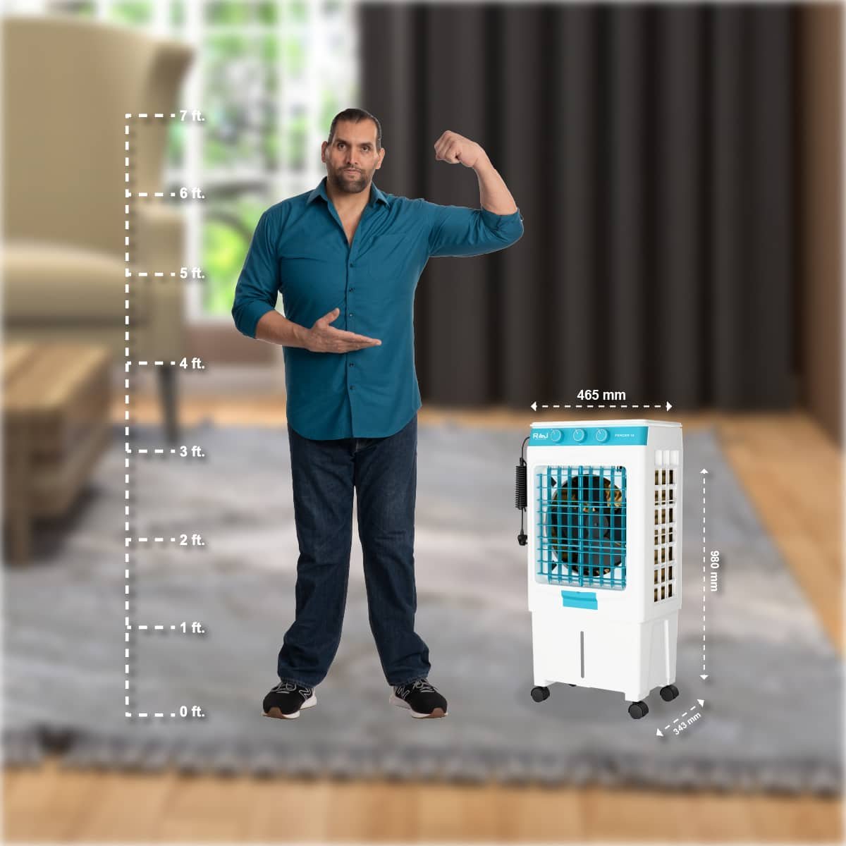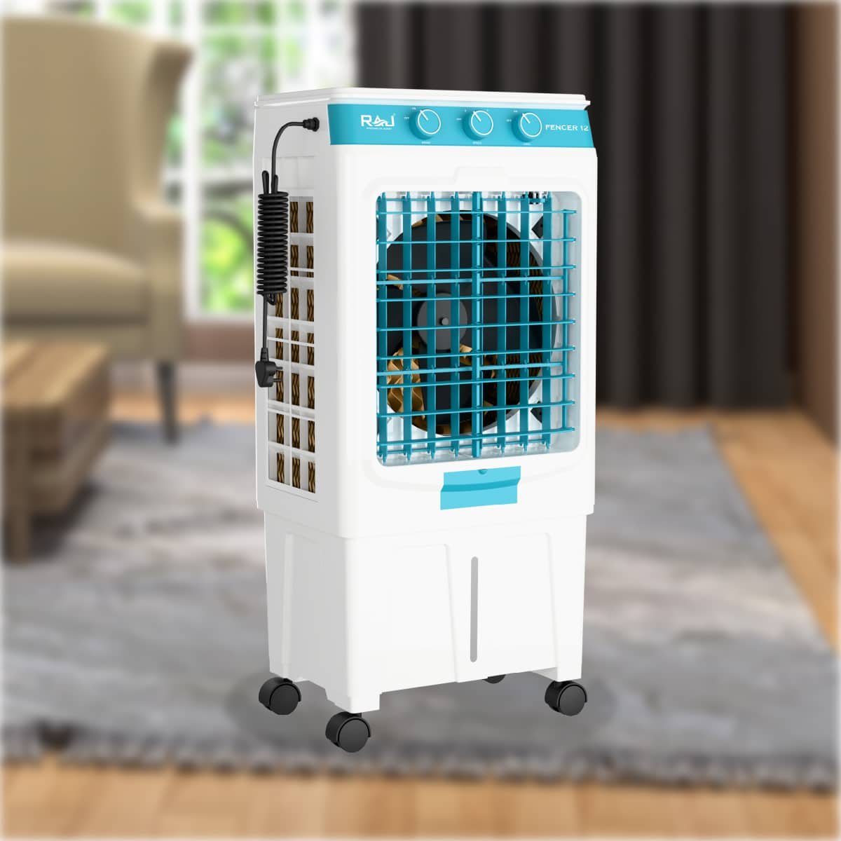 Covering up to 400 sq. ft., the Fencer 12045 is ideal for compact indoor spaces where comfort matters most. Its stylish glass top finish adds a premium touch that blends beautifully with modern interiors. Quick cooling, efficient performance, and user-friendly design — the FENCER 12045 by Raj proves that small can be mighty when it comes to beating the heat.