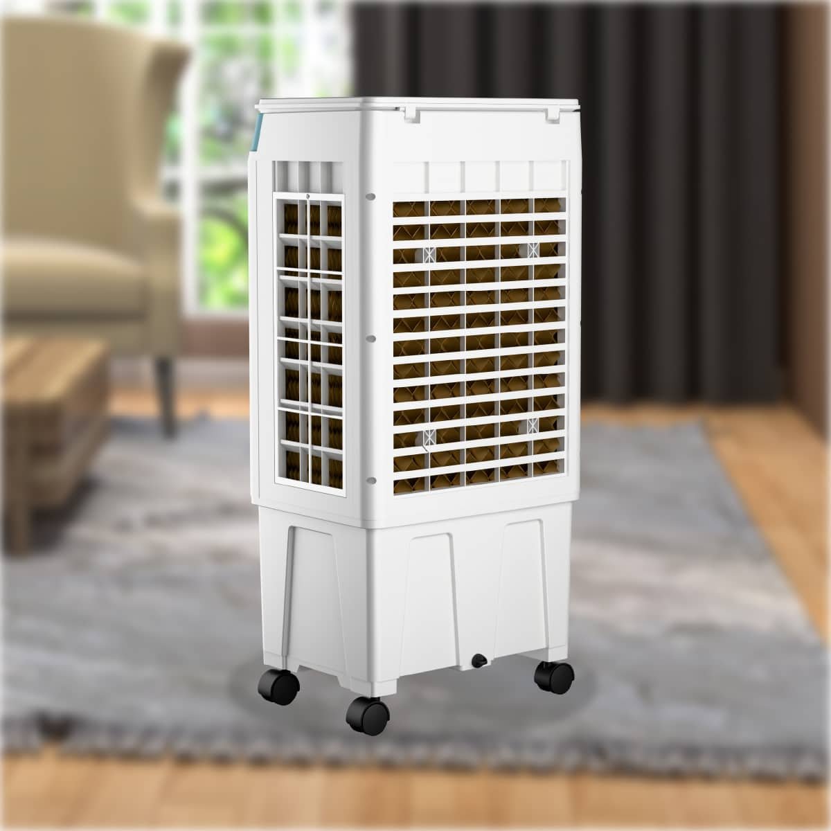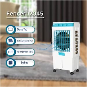 Equipped with a 3X honeycomb pad, the Fencer 12045 ensures every gust of air is cooler and fresher than ordinary coolers can manage. Its smooth swing function spreads the breeze evenly across the room, so no corner stays warm. With a 45-litre water capacity, you get hours of uninterrupted cool air, making hot afternoons feel like a breeze.
