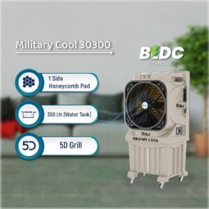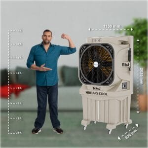 With a powerful 0.75 HP motor, the Military Cooler ensures robust cooling for extra-large spaces up to 2000 sq. ft.