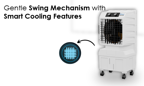 The single high-efficiency honeycomb pad at the back ensures maximum cooling performance by filtering and refreshing the air for a crisp, soothing breeze. Its smooth swing feature spreads cool air evenly across 350 sq. ft., ensuring every corner feels comfortable and chill. Compact yet powerful, the MORCHI COOL 12025 perfectly balances smart design with effective cooling for everyday comfort.