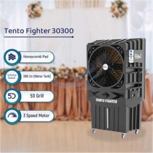 Introducing the TENTO FIGHTER 30, the premier air cooler designed for the tent industry. This cooler features a single-phase 3-speed motor that delivers powerful airflow, ensuring your tent remains cool and comfortable. Operating at a fan noise level of just 68 dB, it provides a tranquil environment for all your tent activities.