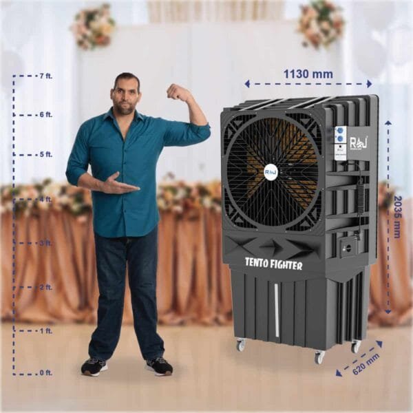Introducing the TENTO FIGHTER 30, the premier air cooler designed for the tent industry. This cooler features a single-phase 3-speed motor that delivers powerful airflow, ensuring your tent remains cool and comfortable. Operating at a fan noise level of just 68 dB, it provides a tranquil environment for all your tent activities.