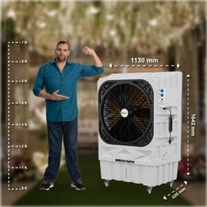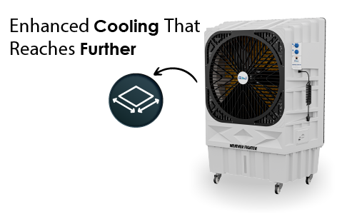 Despite its compact size, the Weather Fighter packs a punch with its high-performance axial fan, capable of circulating up to 18,000 cubic meters of air per hour. This ensures efficient cooling for spaces up to 2550 square feet, whether in living rooms, bedrooms, offices, or small shops. Operating quietly at only 62 decibels, it delivers cooling relief without disruptive noise.