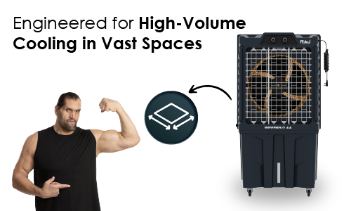 Built for nonstop performance, the enormous 160-liter water tank ensures uninterrupted cooling for long hours without the hassle of constant refilling.The Rhombus 22160 is crafted to meet heavy-duty requirements—perfect for large gatherings, industrial zones, or expansive work environments. With its rugged design and advanced cooling technology, it delivers unmatched reliability and comfort on a grand scale.