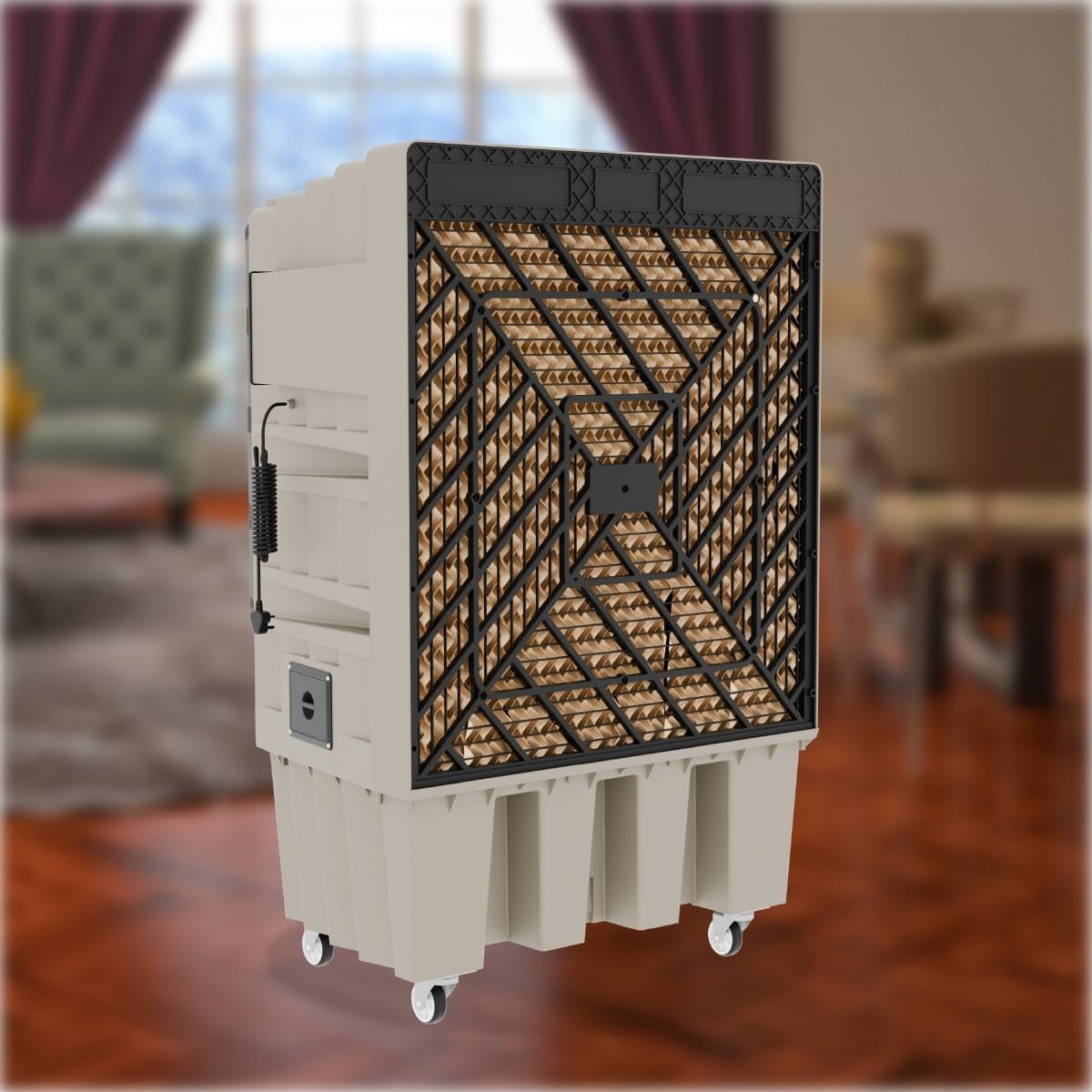 The motorized auto louvers provide uniform air distribution, covering a wide area efficiently. This automatic louver movement optimizes cooling, making it ideal for industrial, commercial, and outdoor spaces.