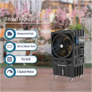 Experience a whole new level of comfort with the Tento Fighter 26150. Its generous 150-liter water capacity ensures you enjoy long-lasting, uninterrupted cooling without the constant need for refills. The advanced honeycomb pad maximizes water retention and cooling efficiency, turning hot, dry air into a refreshing breeze in no time. Whether you’re at home, in your workspace, or managing a large gathering, this cooler keeps you cool effortlessly.