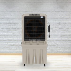 The Thunder Cool 110 AS is a high-performance air cooler with an 18-inch axial fan, ensuring powerful airflow for spaces up to 500 sq. ft. Its 3-side honeycomb pads enhance cooling efficiency, providing long-lasting comfort.